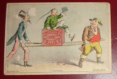Victorian trade card advertising Reckitt Bluing Uncle Sam racial Chinese topic