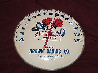 Old & Original Brown's Baking Company Blue Ribbon Bakers Sign Thermometer.