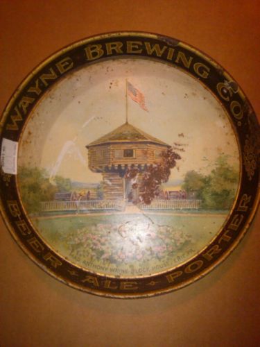 Title (ebay affiliate link): WAYNE BREWING CO. ADVERTISEMENT TIP BEER ALE TRAY Chas W Shonk Co Litho Ca. 1910