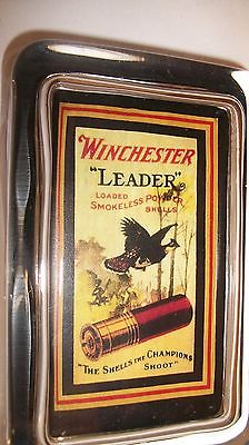 Winchester Leader Shells Bird Fly Hunting Advertising Sign GLASS PAPERWEIGHT 9A