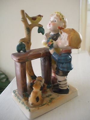 QUALITY PORCELAIN JAPANESE FIGURINE BOY GIRL DOG BIRD MADE OCCUPIED JAPAN. 4-6"