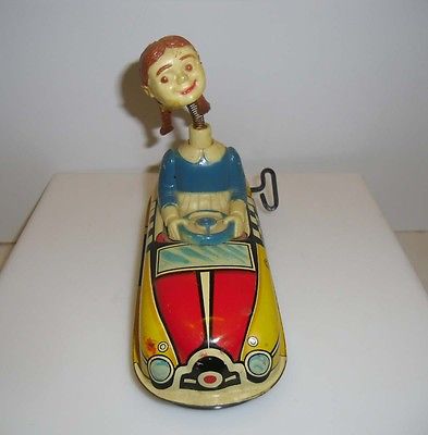 Title (ebay affiliate link): * Antique 1940's Marx Wind-up Nodder Bobble Head Girl Driver's Ed Car Tin Litho
