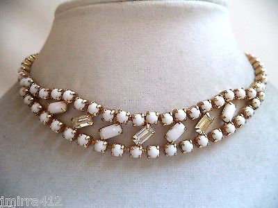 Title (ebay affiliate link): STUNNING VINTAGE ESTATE GOLD TONE HIGH END MILK GLASS RHINESTONE NECKLACE!! 280L