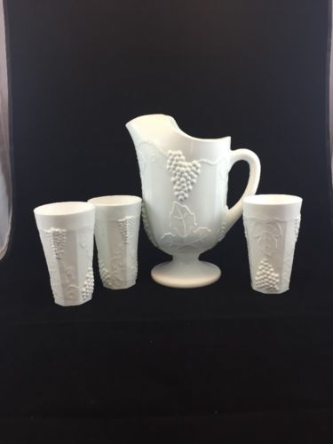 Title (ebay affiliate link): Vintage Milk Glass "Grape Vine" Pitcher And 3 Matching Glasses