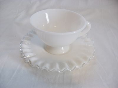 Title (ebay affiliate link): VINTAGE FENTON SILVER CREST CUP & SAUCER SET No.7209 MILK GLASS TO CLEAR GLASS