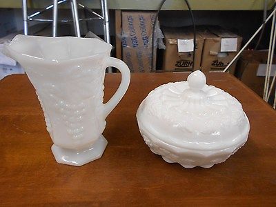 Title (ebay affiliate link): White Milk Glass Pitcher & Westmoreland Covered Candy Dish Bowl