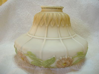 Vintage Ornate Milk Glass Pink Flowers Ceiling Light Fixture Lamp Shade