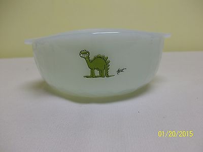 VINTAGE---FIRE KING--BC COMICS MILK GLASS DINOSAUR BOWL--SIGNED JOHNNY HART