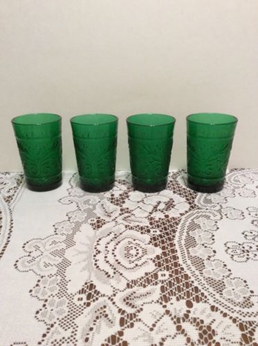 Title (ebay affiliate link): Set of 4 Juice Glasses Forest Green Sandwich Glass 3 Inches High