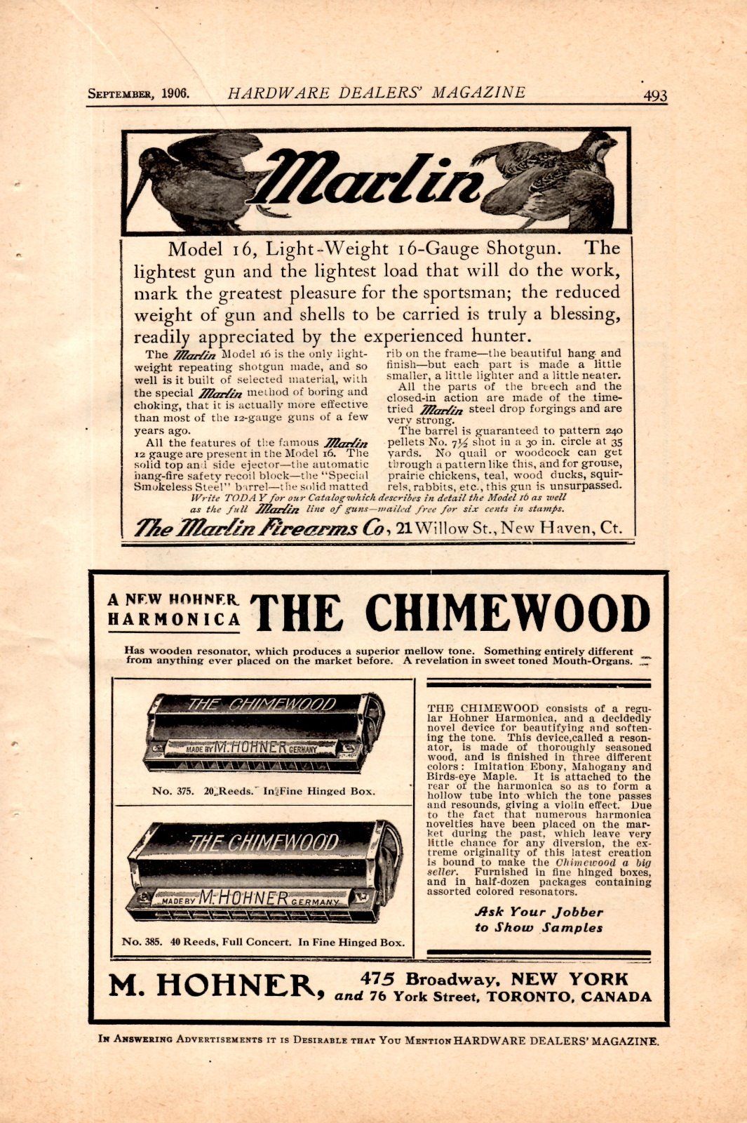 1906 HOHNER CHIMEWOOD HARMONICA AD