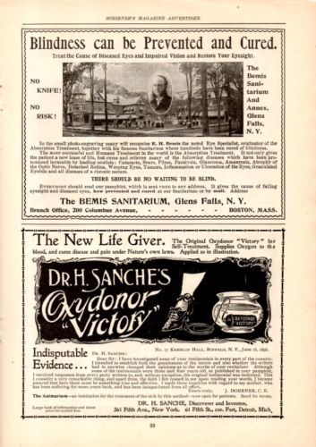 1896 BEMIS SANITARIUM CURES BLINDNESS AD-GLENS FALLS,NY