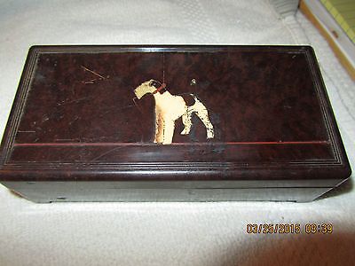Hickok Brown Bakelite/Celluloid? Trinket Box w/Jack Russell Dog on Top