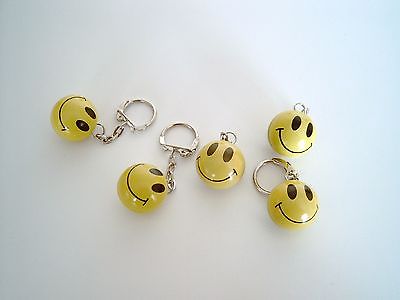 VINTAGE SMILEY FACE KEYCHAIN-KEYRING-LOT OF 5-ROUND BALL-GIFT-70'S PARTY FAVOR