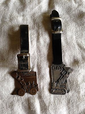 2 Vintage CAT Caterpillar Key Chain Fobs w/ Leather Straps