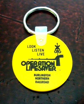 Title (ebay affiliate link): Vintage Burlington Northern RR OPERATION LIFESAVER Key chain/luggage tag