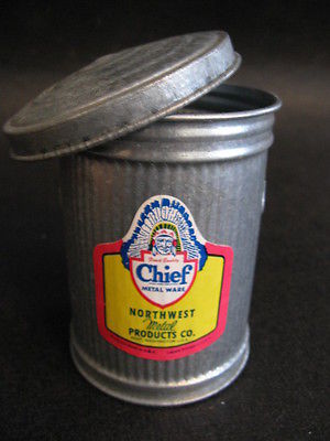 Title (ebay affiliate link): MINT SALESMAN SAMPLE TRASH CAN INDIAN CHIEF METAL PRODUCTS KENT SEATTLE WA 50s