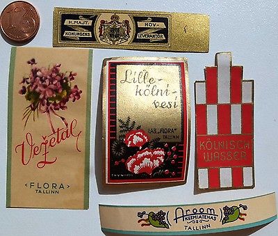 1920-30's Estonia Vintage Small Perfume Labels Set of 5 # 8