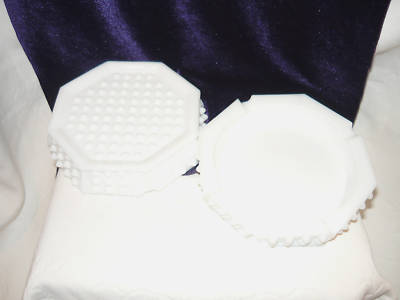 Fenton Octagon White Milk Glass Hobnail Ashtrays