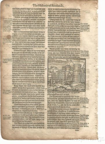 Title (ebay affiliate link): 1577 LEAF HOLINSHED HISTORY SCOTLAND W/ WOODCUTS KING KILLED +++