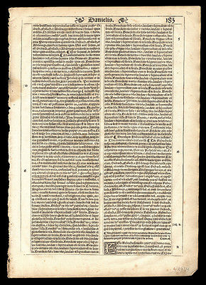 Title (ebay affiliate link): 1539 Crispini Latin Bible Leaf The Prophet Daniel 4-5 King Nebuchadnezzar