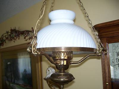 Vintage Brass Hanging Lamp with Milk Glass Shade