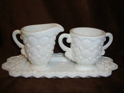 Vintage Milk Glass Sugar Creamer and Tray