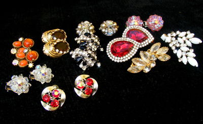 10 VINTAGE RHINESTONE MILK GLASS EARRING ESTATE LOT #1