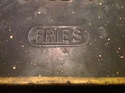 RARE 1890s Vintage Antique 'Fries' Brand Metal Black & Gold Metal Box Storage