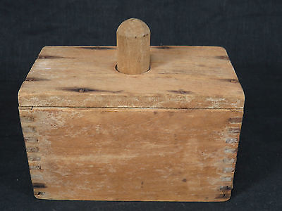 Antique Primitive Wood Butter Mold Press,Dovetailed Corners Kitchen Collectible