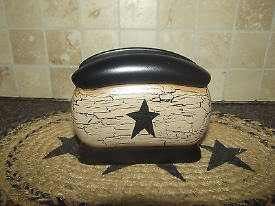 Primitive Crackle Ceramic Napkin Holder ~ Black Stars ~ Country Farm Decor