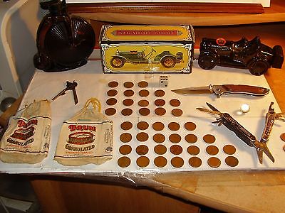 COINS+POCKET KNIFES+COLLECTIBLES-50+ ITEMS-STRAIGHT EIGHT ANTIQUE CAR DECANTER$$