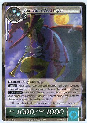 Title (ebay affiliate link): FORCE OF WILL TCG: 4 x HAMELIN'S PIED PIPER Rare Cards MINT # CMF-043