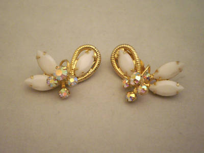 Vintage Juliana AB & Milk Glass Gold Accent Earrings