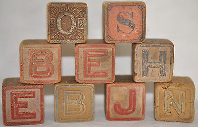 Title (ebay affiliate link): 9 VINTAGE CHILDREN'S WOODEN TOY BLOCKS WITH LETTERS AND PICTURES, c 1940