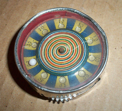Title (ebay affiliate link): Vintage DRGM Tin Roulette Dexterity Puzzle Game Spinning Spiral Design Germany