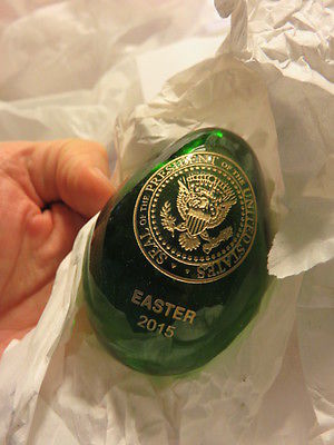 Title (ebay affiliate link): 2015 Obama SOP White House Easter Egg Glass New Box Secret Service Green