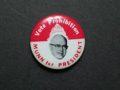 Prohibition Party Munn for President campaign pin button political badge