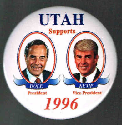 Title (ebay affiliate link): 1996 UTAH SUPPORTS BOB DOLE - KEMP PIN a788