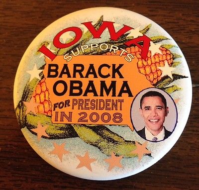 Title (ebay affiliate link): Beautiful Guardfrog Iowa Supports Obama in 2008 Pinback Button