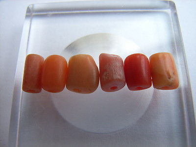 6 Ancient Egyptian Smaller Coral Beads Egypt VERY RARE! TOP !!
