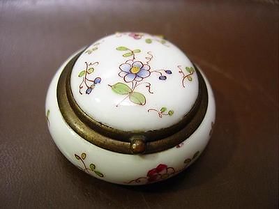 Antique Porcelain Patch Box W/ Brass Ormolu Mounts & Hand Painted Florals