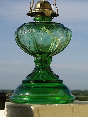 Circa 1900 Emerald Green Antique Glass Oil Lamp