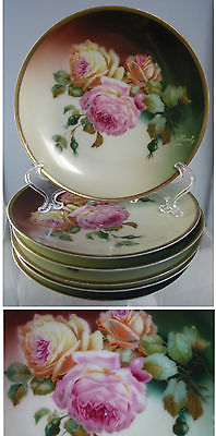 SET OF 6 PLATES SEVRES BAVARIA HAND PAINTED BEAUTIFUL ANTIQUE VICTORIAN ROSES