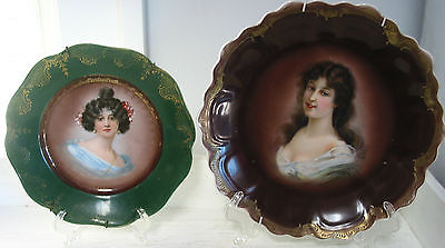 2 VINTAGE CABINET PICTURE PLATES R.C BAVARIA &Z.S.CO VICTORIAN LADIES BEAUTIFU
