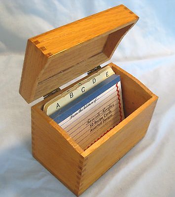 VINTAGE OAK WOODEN INDEX / RECIPE FILE BOX with INDEX CARDS "SEE"