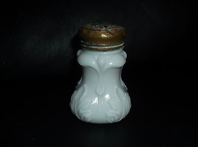 PERFECT Antique Milk Glass Salt/Sugar SHAKER,"Leaf Cornered Base" Pattern,Scroll