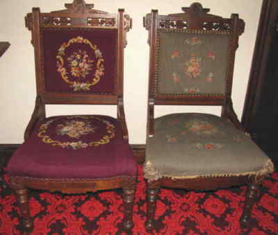 Pair EASTLAKE Upholstered CHAIRS c 1875 walnut
