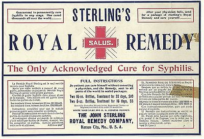 Title (ebay affiliate link): 1902 JOHN STERLING ROYAL REMEDY CO, KANSAS CITY, MO SYPHILIS CURE COLOR SIGN