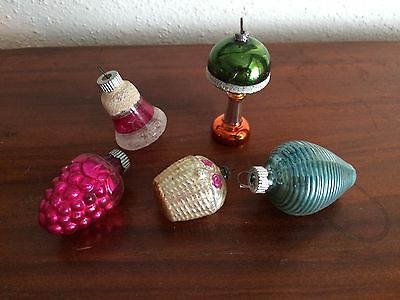 Sweet Lot 5 Vintage Christmas Ornaments Feathertree Figural Lamp Basket Grapes