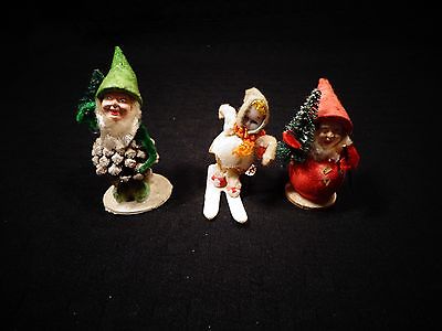 3 cool VINTAGE christmas PUTZ ornament FIGURES..spun cotton SANTA..PINE CONE MAN